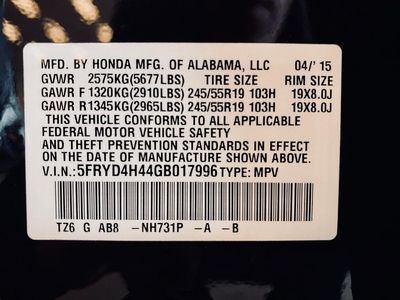 - Manufacturer Name: HONDA MFG., ALABAMA., LLC.