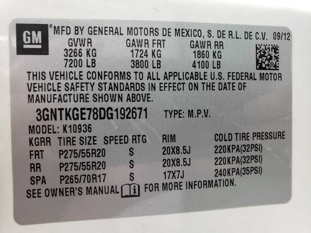 VIN: 3GNTKGE78DG192671