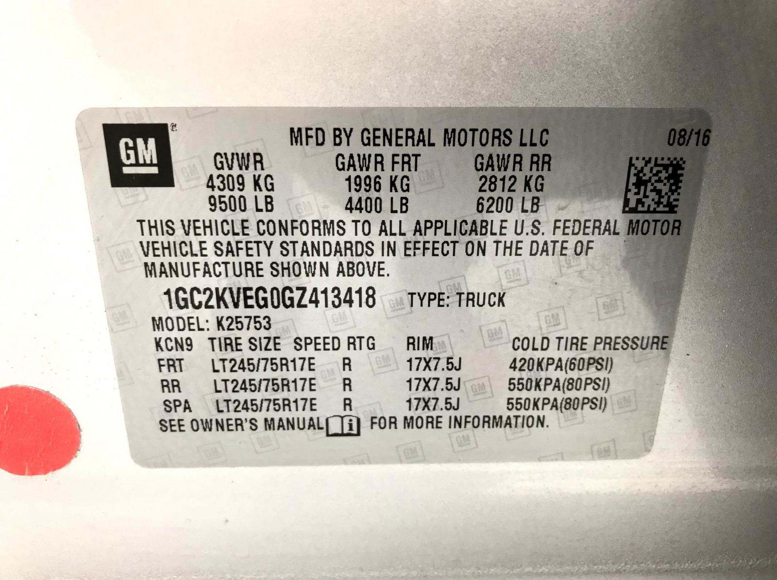 VIN: 1GC2KVEG0GZ413418
