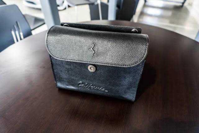 Leather/aluminum center console trim