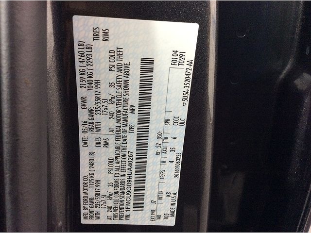 VIN: 1FMCU9GD9HUA40267