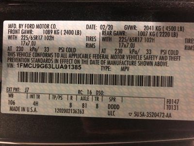 VIN: 1FMCU9G63LUA91385