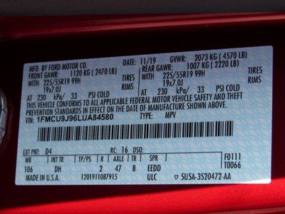 VIN: 1FMCU9J96LUA84580