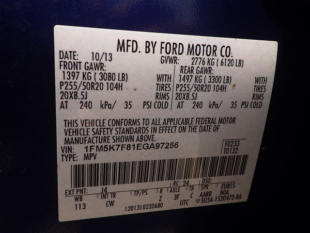 VIN: 1FM5K7F81EGA97256