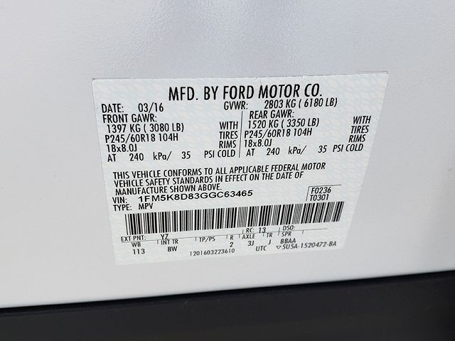VIN: 1FM5K8D83GGC63465