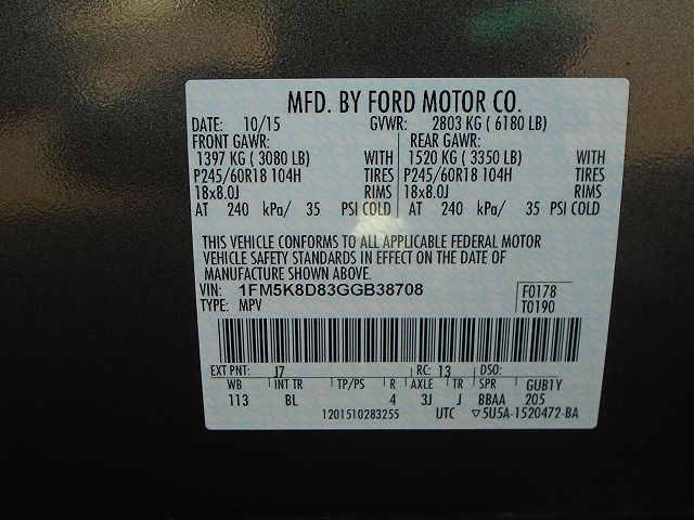 VIN: 1FM5K8D83GGB38708