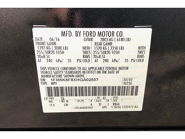 VIN: 1FM5K8F8XHGA02557