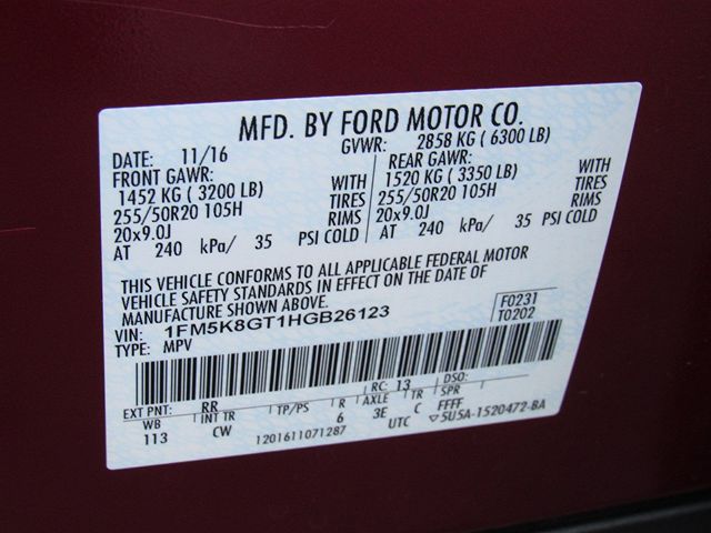 VIN: 1FM5K8GT1HGB26123