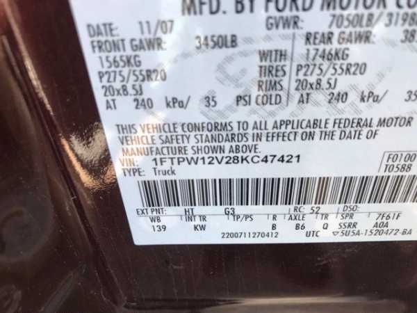 VIN: 1FTPW12V28KC47421