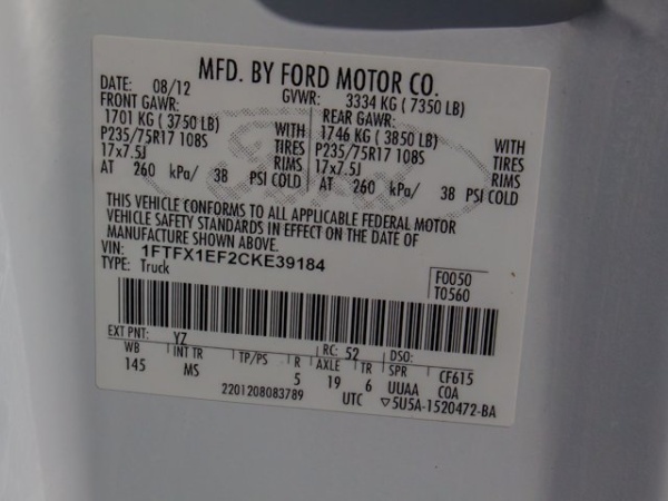 VIN: 1FTFX1EF2CKE39184