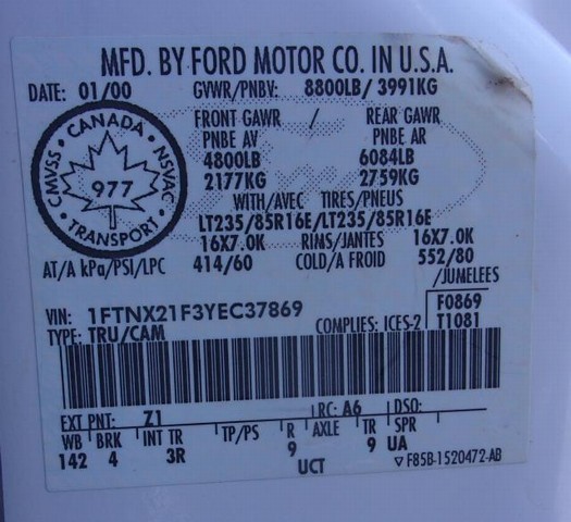 VIN: 1FTNX21F3YEC37869
