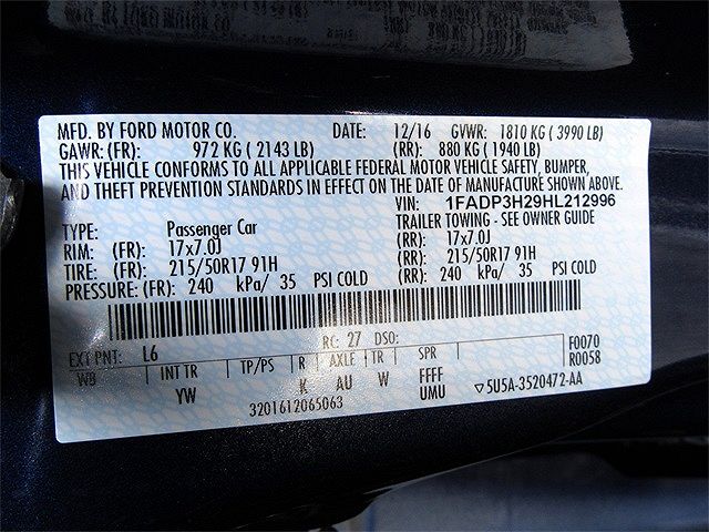 VIN: 1FADP3H29HL212996