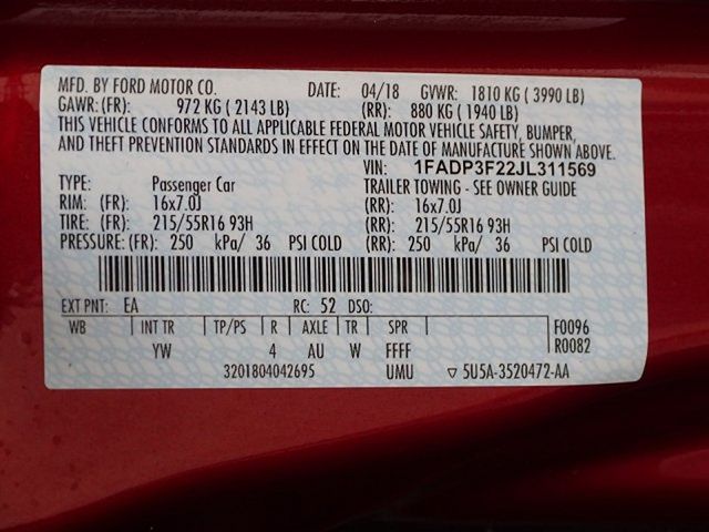 VIN: 1FADP3F22JL311569