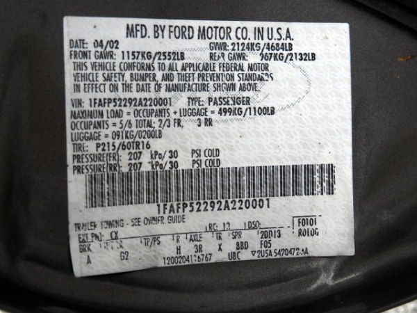 VIN: 1FAFP52292A220001