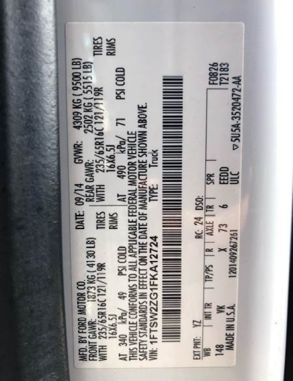 VIN: 1FTSW2ZG1FKA12724