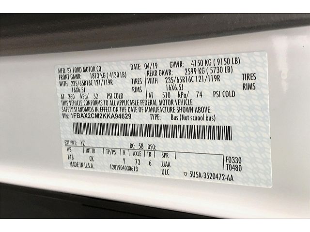 VIN: 1FBAX2CM2KKA94629