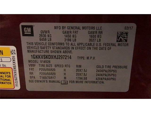 VIN: 1GKKVSKDXHJ297214