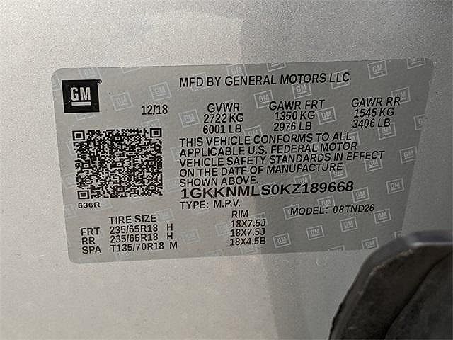 VIN: 1GKKNMLS0KZ189668