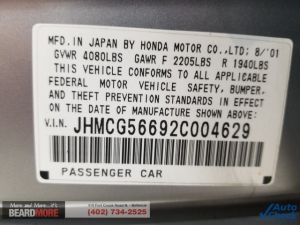VIN: JHMCG56692C004629