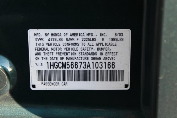 VIN: 1HGCM56673A103166