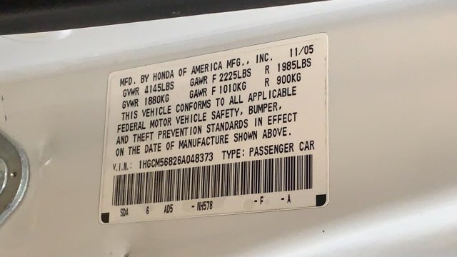 VIN: 1HGCM56826A048373