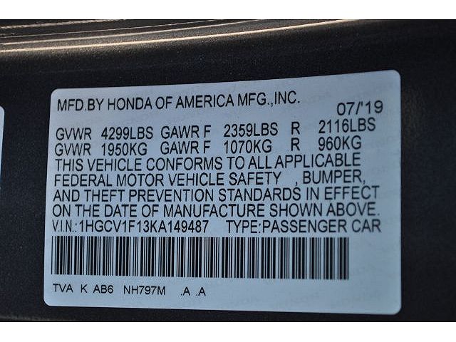 VIN: 1HGCV1F13KA149487