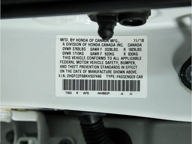 VIN: 2HGFC2F68KH507446