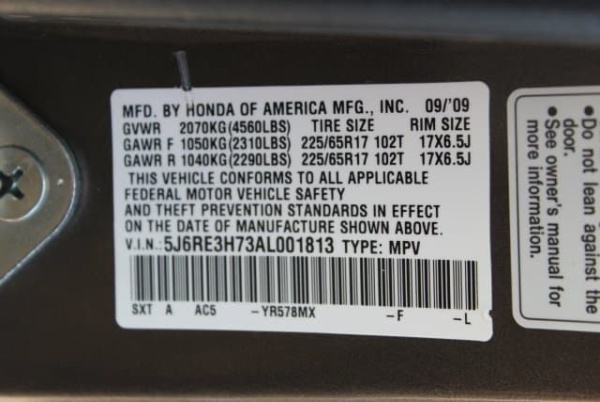 VIN: 5J6RE3H73AL001813