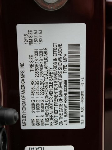 VIN: 5J6RW1H86HL003589