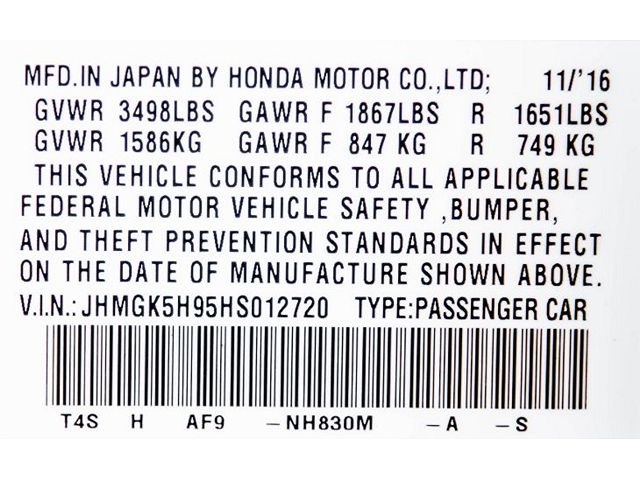 VIN: JHMGK5H95HS012720