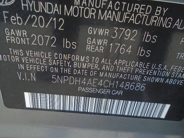 VIN: 5NPDH4AE4CH148686