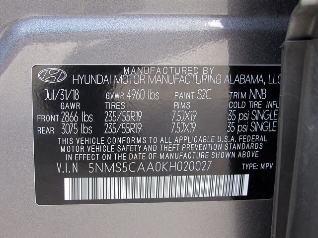VIN: 5NMS5CAA0KH020027