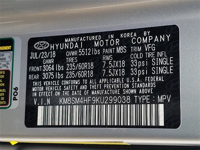 VIN: KM8SM4HF9KU299038
