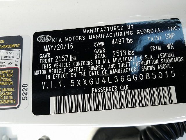 VIN: 5XXGU4L36GG085015