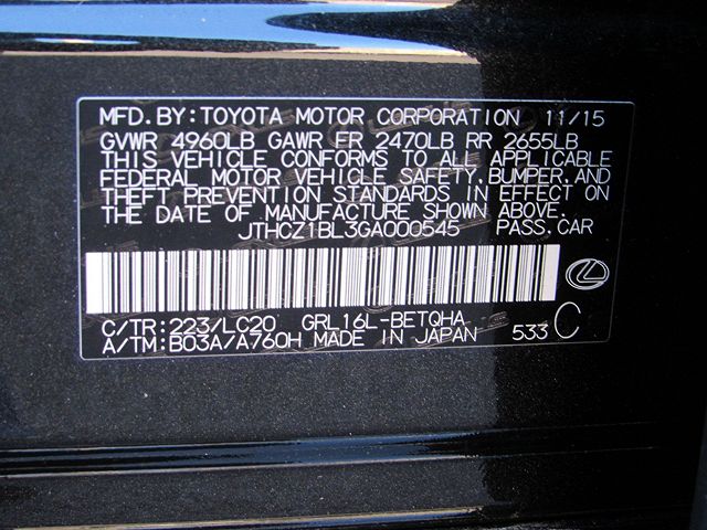 VIN: JTHCZ1BL3GA000545