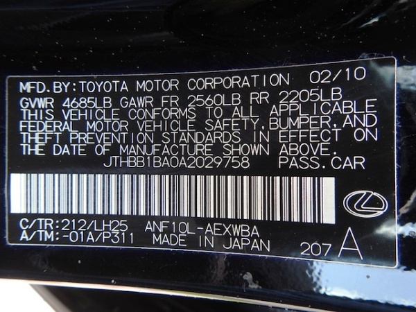 VIN: JTHBB1BA0A2029758