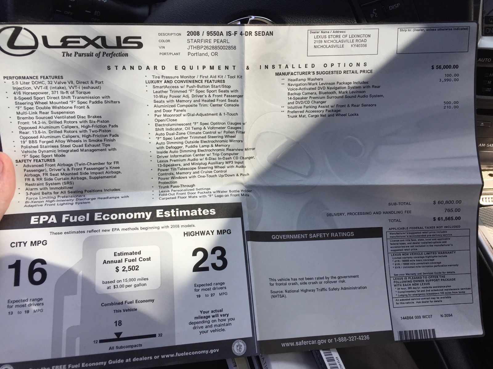 VIN: JTHBP262885002858