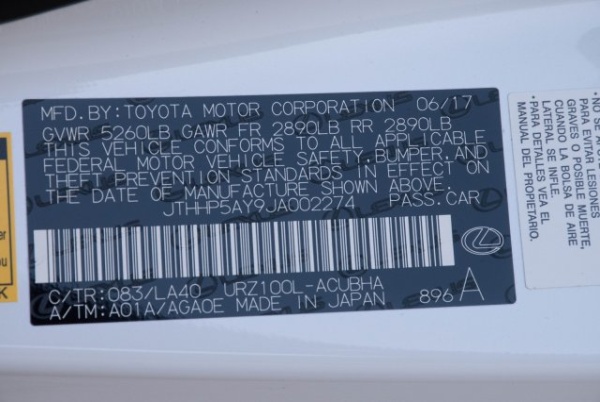 VIN: JTHHP5AY9JA002274