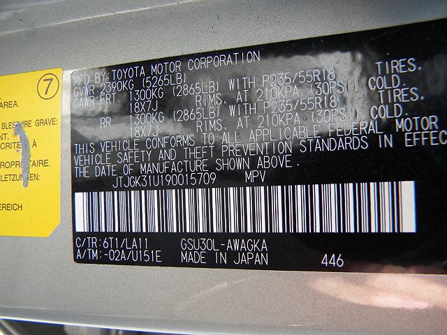 VIN: JTJGK31U190015709