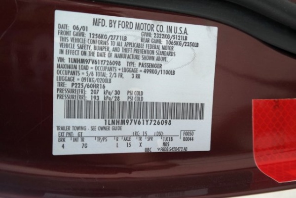 VIN: 1LNHM97V61Y726098