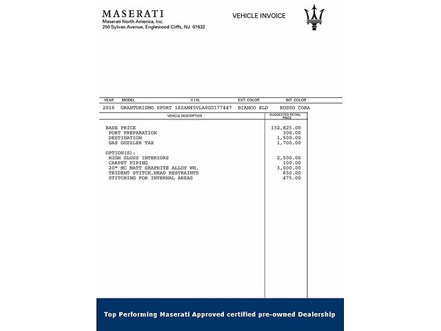 - Manufacturer Name: MASERATI NORTH AMERICA, INC.