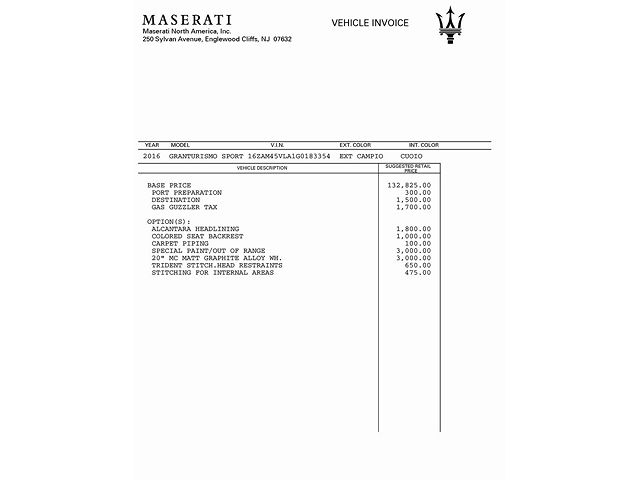 - Manufacturer Name: MASERATI NORTH AMERICA, INC.