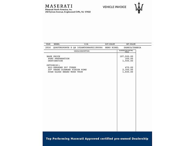 - Manufacturer Name: MASERATI NORTH AMERICA, INC.