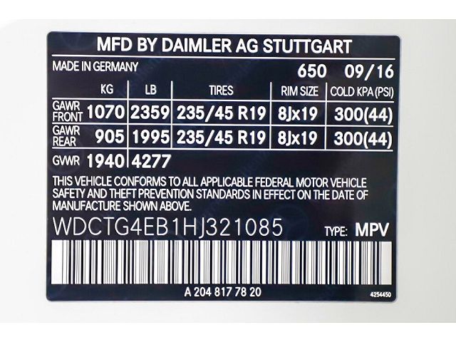 VIN: WDCTG4EB1HJ321085