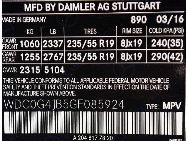 VIN: WDC0G4JB5GF085924