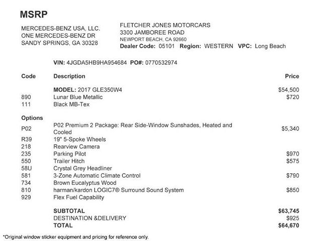- NCSA Model: GLE Class (For 2016-2018 only. For model years 2019 on, see 42-423.)