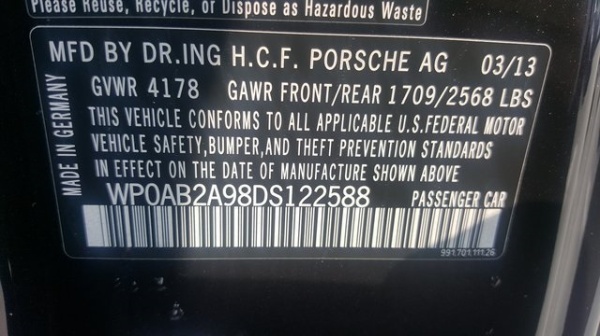 VIN: WP0AB2A98DS122588