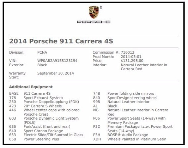 VIN: WP0AB2A91ES123194