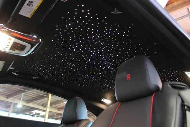 leather upholstered dashboard and aluminum overhead console insert