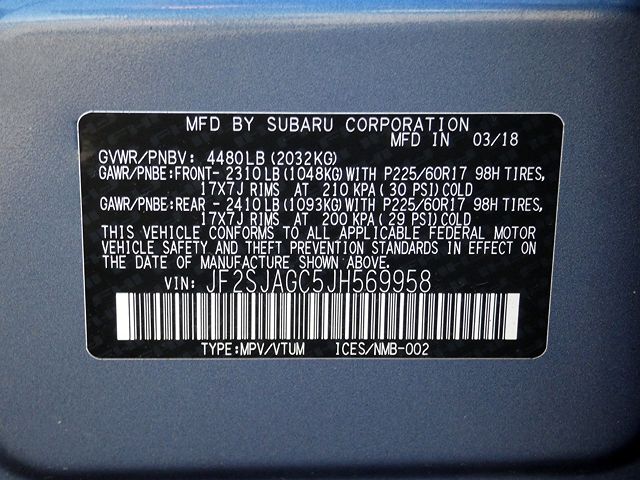 VIN: JF2SJAGC5JH569958